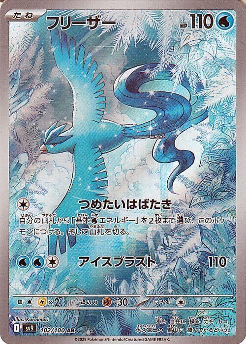 ★収録:ポケモンカードゲーム スカーレット&バイオレット 拡張パック「バトルパートナーズ」 ■カード名:フリーザー/Articuno ■HP:110/タイプ:水 ■分類:たねポケモン ■ワザ ●無:つめたいはばたき 自分の山札から「基本水エネルギー」を2枚まで選び、このポケモンにつける。そして山札を切る。 ●水水無